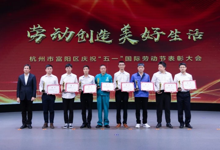 ?2022年4月29日,杭州市富陽區慶祝“五一”國際勞動節表彰大會在召開,公司徐崇玉研發團隊榮獲2021年度富陽區職工“突出貢獻獎”。